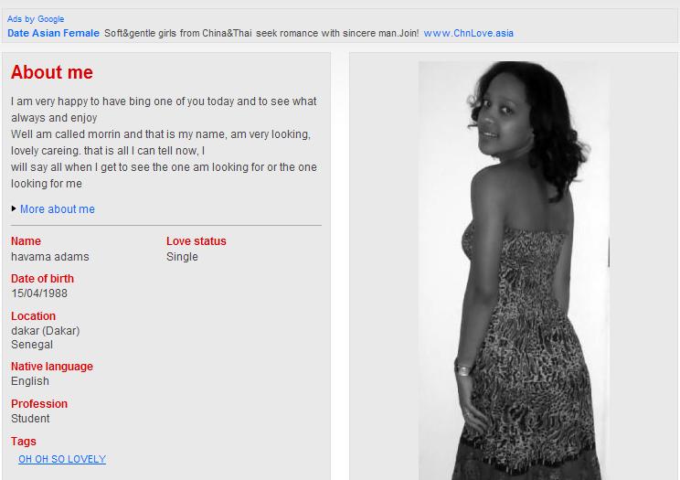 My name is Blessing Adams. I am 21 years old from Liberia in Africa, 5.8ft tall, fair in complexion, single, (never married ) and presently I am residing here in Burkina Faso as a refugee due to the civil war that was fought in my country some years ago. My late father, Dr Clement Jerome Adams was the Managing Director of C.J.A & Associates (Ltd) A Diamond Consulting Company in Monrovia (the capital of Liberia) before he was assassinated.  Through African Union intervention, I was transferred to Burkina Faso where I am leaving now as a refugee. I am currently under the supervision of Reverend Father Michael Duke, whose computer I'm using to write you. My mother was late when I was just five years old.