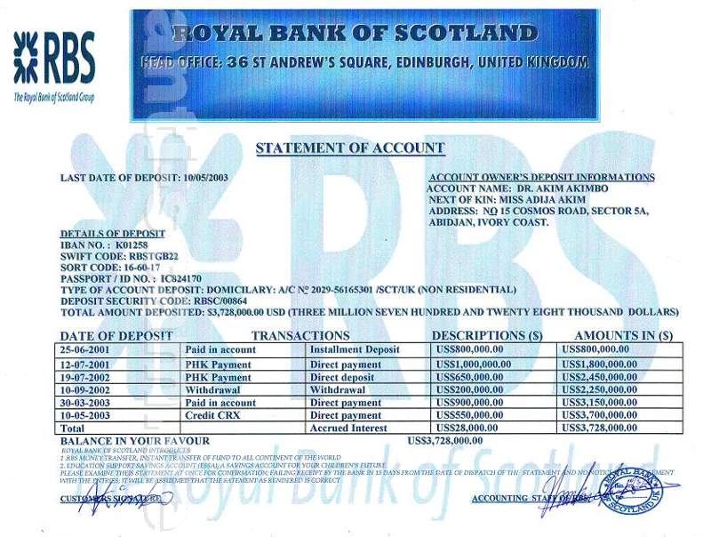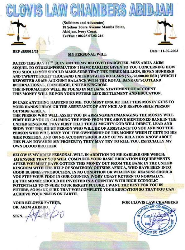 Wie der Name meines verstorbenen Vaters ist Dr. Akim Akimbo und die Kontonummer 2029-56165301, und mein Name ist Miss Adija Akim so möchte ich Sie an die Bank jetzt schreiben, dass Sie meine partner.and Sie wissen wollen, sind wenn dieses Geld ist in diesem account.and was ist das possablity der Übertragung der Geld auf Ihr Konto.