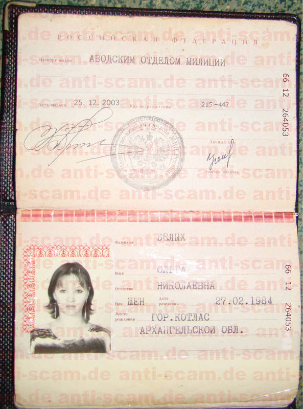 Zum gefälschten Pass 66 12 264053 von Olga Nikolaevna Belych: