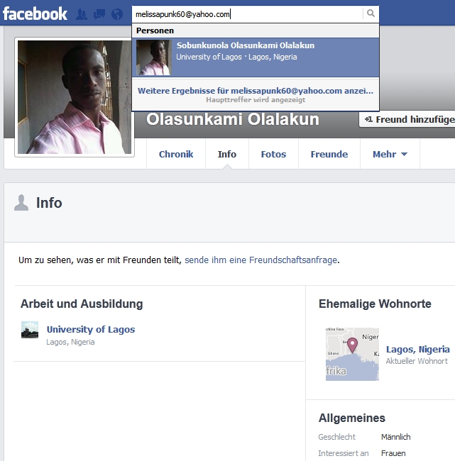 Anti-Scam › Afrika › White and negroid Females › Melissa <melissapunk60@yahoo.com> ![]() |