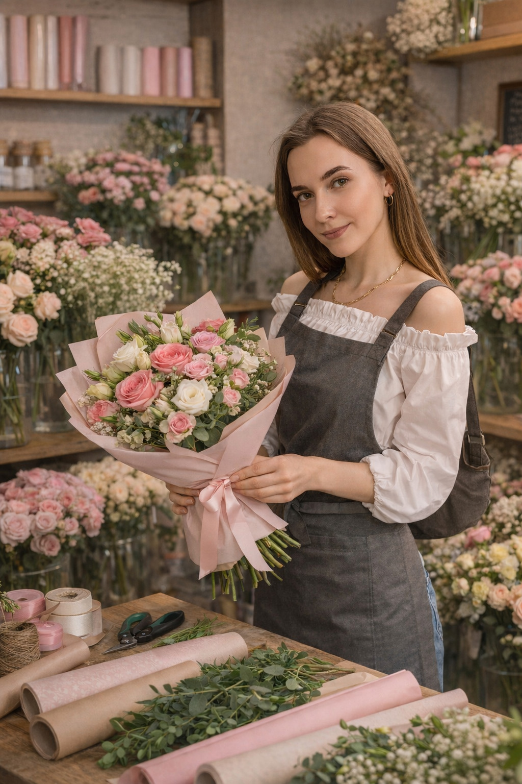 I'm a florist by profession. I truly enjoy my work I love flowers, creating beautiful bouquets, and seeing how they bring people joy and happiness. There's something very alive and sincere about it, and that's probably why I appreciate beauty not only in the outer world but also in the inner world.